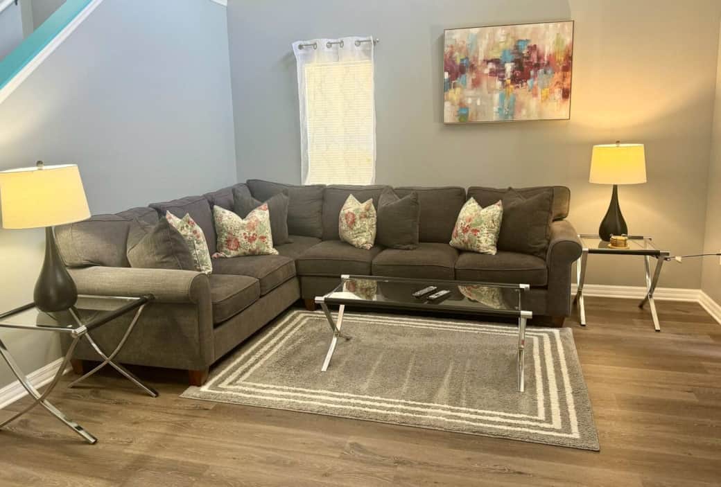 - Basic starter pack provided (tea, coffee, sugar, milk, juice/soda, cookies, chips, paper towel, one toilet roll per bathroom, small dish soap, sponge, hotel size soap and shampoo, 2 dishwasher tablets, small laundry detergent, trash can liners in each trash can.